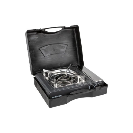 Fornello a cartuccia con accensione piezoelettrica e termocoppia.